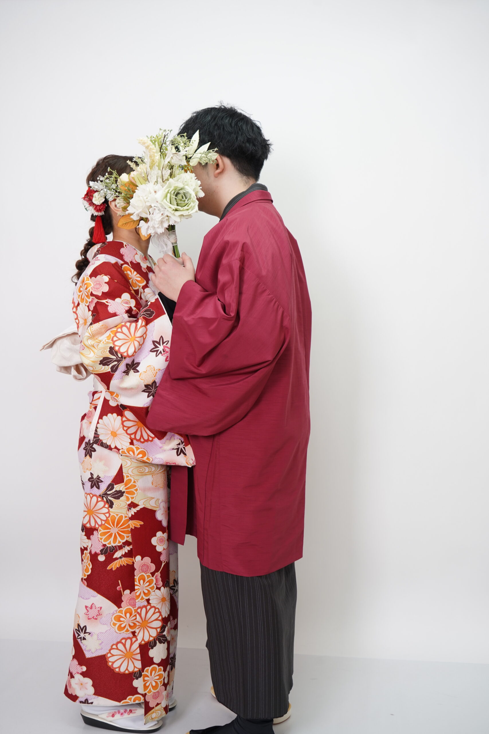 基本的な小道具はスタジオに揃っているので手ぶらでもOK。でも、2人のお揃いグッズや思い出のアイテムを持参すれば、もっと“自分たちらしい”写真に仕上がります。